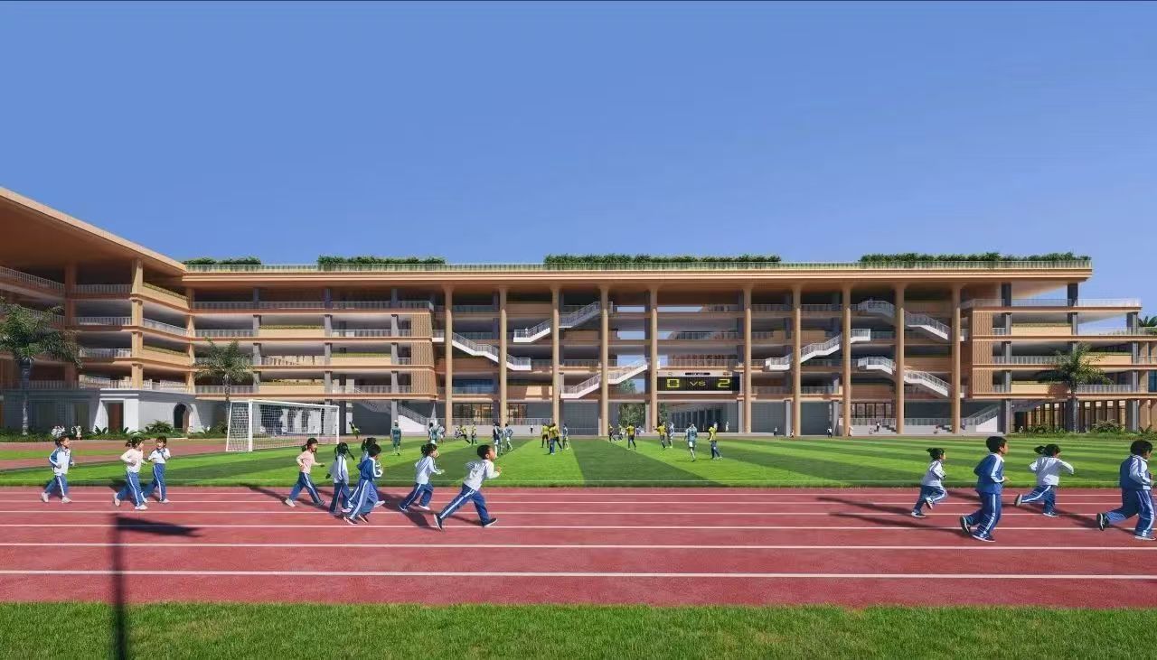 校園設(shè)計(jì)以“山水方舟”為核心理念,設(shè)計(jì)以山之脈絡(luò)為校園之脈絡(luò),通過中央學(xué)習(xí)街串聯(lián)起各個(gè)庭院與建筑群,以水為脈絡(luò)聯(lián)系各個(gè)景觀庭院,既有江南園林之韻,又有嶺南自然之美。整體校園建筑群以舟為形,猶如在坪山河畔揚(yáng)帆起航。學(xué)校設(shè)有報(bào)告廳、健身房、教師宿舍、各類球館,以及與餐廳相結(jié)合的校園圖書館,教學(xué)樓每層設(shè)有年級(jí)組辦公室以及大小會(huì)議室、討論室,并且每個(gè)班級(jí)邊上配備有獨(dú)立的班主任辦公室,功能齊全完善,各具特色。